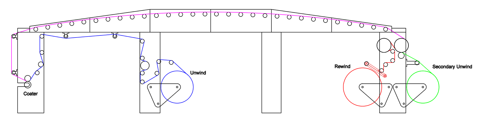 Dry Lamination machine is used for lamination of 2 substrates using a solvent or water based adhesive. These machines can also be used as a single head coating machine. These machines are used to laminate 2 non-porous substrates like foil and cpp, polyester and poly etc…