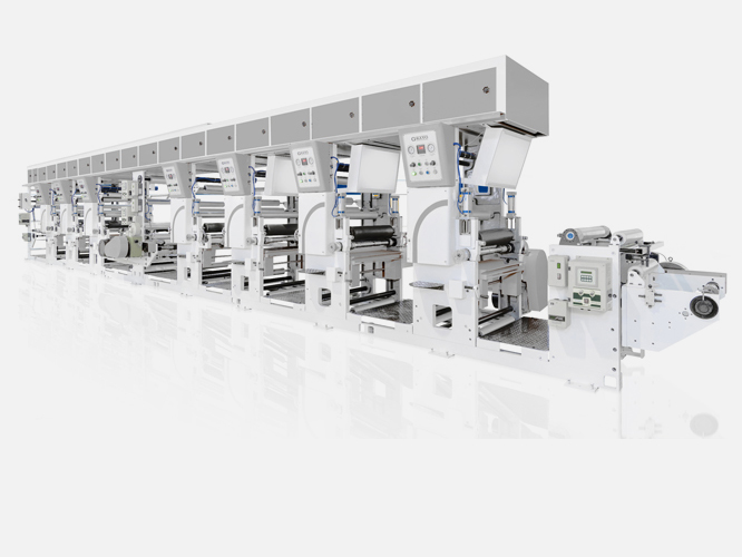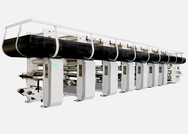 A highly customisable Rotogravure Printing line with Mechanical Line Shaft. Suitable for long job lengths for printing on Paper, BOPP, Polyester, etc.